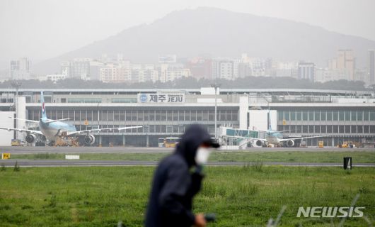 [제주=뉴시스] 우장호 기자 = 황사 영향으로 제주지역 미세먼지 농도가 '매우 나쁨' 수준을 보인 17일 오후 제주국제공항 인근 도로에서 마스크를 시민이 걸어가고 있다. 2024.04.17. woo1223@newsis.com |