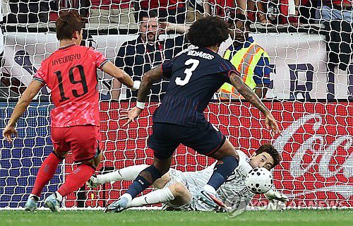 환상적인 2단 세이브를 보여준 조현우는 1분 뒤, 발로건이 페널티 박스 안에서 시도한 슈팅이 수비 맞고 굴절됐음에도 집중력을 발휘해 골대 옆으로 쳐냈다.