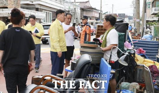 [더팩트ㅣ군산=이정수 기자] 김관영 전북도지사가 7일 집중호우 피해가 발생한 군산을 찾아 신속한 복구와 2차 피해 방지를 위한 종합 대책을 지시했다.