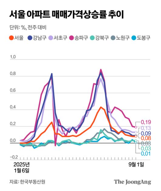 권대중 한성대 일반대학원 경제·부동산학과 교수는 “충분한 공급 시그널이 나와야 집값이 안정될텐데 아쉬운 측면이 있다”고 짚었다. 현재 수도권 집값 흐름은 고강도의 6.27 대출 규제 이후 상승세가 둔화한 상황이다. 다만 대출 규제에서 자유로운 강남 3구 등에선 연일 신고가가 나오는 등 서울 아파트값은 초양극화 양상이다. 시장에선 당분간 이 같은 흐름이 강화될 것으로 보고 있다. 권 교수는 “대출 규제로 수요가 줄었다가 다시 마용성(마포·용산·성동구)에서도 신고가가 나오기 시작했다”며 “가을 이사철을 앞두고 전월세와 매매 가격이 강보합세를 띨 것으로 보인다”고 내다봤다.