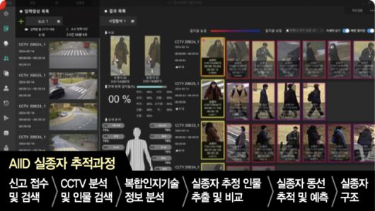 AIID는 AI를 기반으로 CCTV 영상 분석부터 유사인물 검색 및 분석, 동선 추적과 예측까지 가능한 복합인지기술 기반 지능형 관제 프로그램이다. 실종자 신고가 접수되면 AIID는 영상 속 유사 인물을 자동 실종자 후보군으로 뽑고, 서로 다른 시점의 카메라를 동선 그래프로 묶어 ‘사라진 구간’을 좁힌다. 실종자가 마지막 포착 지점 이후 어디서 사라졌는지 분석하고 동선을 예측해 경찰 수색 인력을 해당 구역으로 좁혀 배치할 수 있다는 게 가장 큰 강점이다. 경찰 관계자는 “실종자 수색에는 상당히 많은 인력과 시간이 소요된다”며 “숨진 이태원 참사 출동 소방관도 AIID 시스템이 전국적으로 깔려 있었다면 구할 수 있었을 텐데"라며 안타까움을 토로했다.