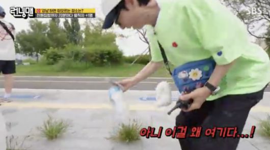 이후 레이스 시작5분 만에 하하와 조우했지만, 유재석의 쓰레기 줍기는 계속됐다.