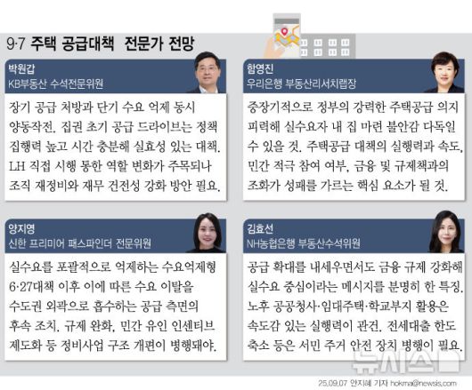 김효선 NH농협은행 부동산수석위원은 "공급 확대를 전면에 내세우면서도 금융 규제를 강화해서 실수요 중심이라는 메시지를 분명히 했다는 게 특징"이라며 "세부적인 실행과 속도에 따라 시장의 체감이 크게 달라질 것"이라고 전망했다.