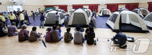 전북지역에 극한호우가 내린 7일 전북 전주시 용소중학교 마련된 대피소에 진기·월평마을 주민들이 집중호우로 인한 대피명령을 받고 대피해 있다. 2025.9.7/뉴스1 ⓒ News1 유경석 기자 |