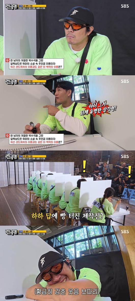 첫 퀴즈로 '한 남자의 처절한 복수극을 그린 알렉상드르 뒤마의 소설 속 주인공 이름이자 튀긴 샌드위치의 이름과도 같은 이 백작의 이름은?'이라는 문제가 출제됐다. 김종국은 "되게 유명한 삼각형 (샌드위치다)"라며 정답을 알아챘다.