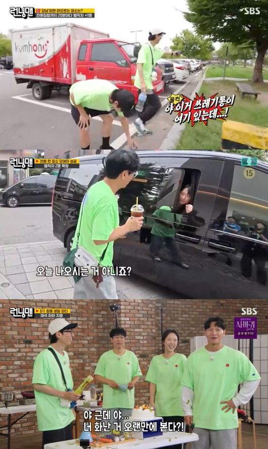 이날 멤버들은 각자 흩어진 채로 시작, ‘강남’ 하면 떠오르는 장소를 선택해 이동해야만 한 가운데, 유재석은 한강공원으로 이동했다. 멤버들을 찾기 위해 무전을 하던 유재석은 "쓰레기 너무 많네"라고 탄식을 금치 못하며 쓰레기를 줍기 시작했다. 이어 "왜 이걸 여기다가"라고 재차 분노하며 계속 쓰레기를 줍기도. 이후 레이스 시작5분 만에 하하와 조우했지만, 유재석의 쓰레기 줍기는 계속됐다.
