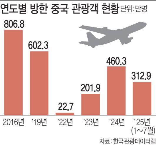 여행·호텔 등 관련 업계는 무비자 입국 허용이 2017년 한한령에 이은 2020년 코로나19 사태로 급감한 중국 내 방한 수요 회복의 촉매제가 될 것으로 기대하고 있다. 지난해 460만여 명이 방한한 중국 관광객은 역대 최대였던 2016년(약 807만 명)의 57%, 팬데믹 이전인 2019년(약 602만 명)의 76% 회복에 그쳤다.