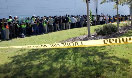 4일(현지 시각) 미이민세관단속국이 전격 단속을 실시한 미국 조지아주 현대차그룹-LG에너지솔루션 합작 배터리 공장 건설 현장에서 무장한 마약단속국(DEA) 요원들이 지켜보는 가운데 공장 직원들이 작업을 중지하고 밖으로 나오고 있다./ICE홈페이지 |