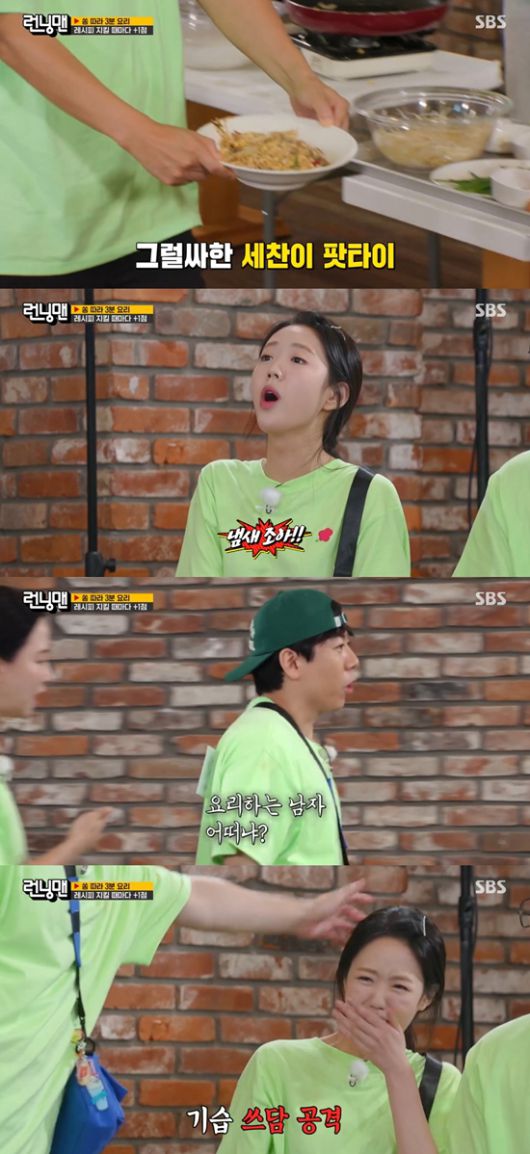 능숙하게 요리하는 양세찬의 모습에 지예은은 "맛있을 것 같다. 냄새 좋다"라며 칭찬을 건넸다. 이에 하하는 지예은과 러브라인을 노리는 양세찬에게 "지예은이 지금 너한테 반했다"라고 전했다.