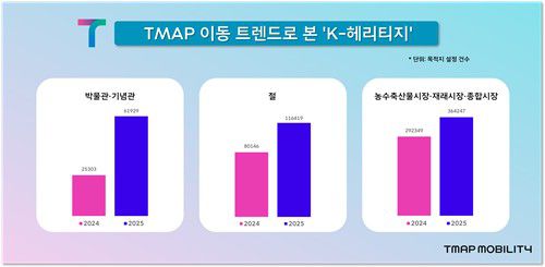 티맵모빌리티는 올해 7∼8월 주행 데이터를 분석한 결과 박물관, 사찰, 시장으로 향하는 이용객이 전년 대비 급증했다고 8일 밝혔다.