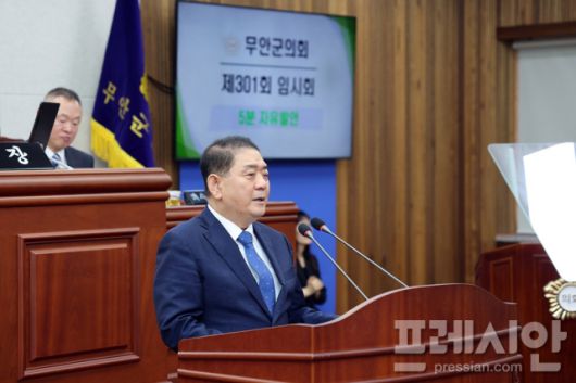 ▲지난 5월 분산에너지 인프라 구축 시급에 대한 5분 자유발언을 하고 있다. ⓒ무안군의회 |