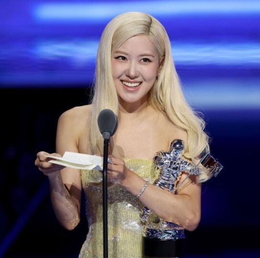 그룹 블랙핑크의 로제가 히트곡 '아파트'(APT.)로 미국 대중음악 시상식 'MTV VMA'에서 트로피를 들어 올렸습니다.