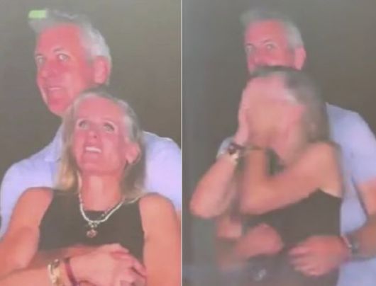 콜드플레이 콘서트에서 대형 전광판에 포착된 기업 아스트로노머 불륜 커플의 모습. (사진=틱톡 영상 캡처) |
