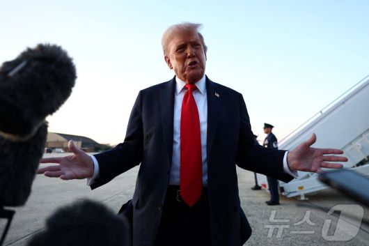 7일(현지시간) 도널드 트럼프 미국 대통령이 메릴랜드주 앤드루스 합동기지에서 취재진 질문에 답하고 있다. 2025.09.07 ⓒ 로이터=뉴스1 ⓒ News1 김지완 기자 |