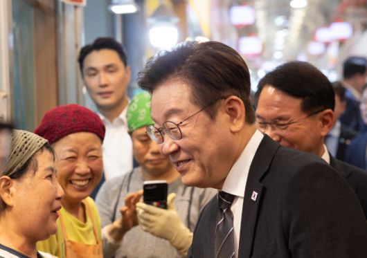 이재명 대통령이 지난 5일 인천 용현시장을 방문한 모습. 대통령실 제공 |