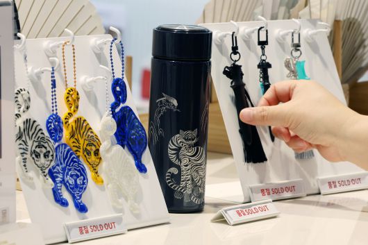 서울 용산구 국립중앙박물관 공식 굿즈 매장 '뮷즈샵'에서 관람객들이 제품을 살펴보고 있다. / 뉴스1 |