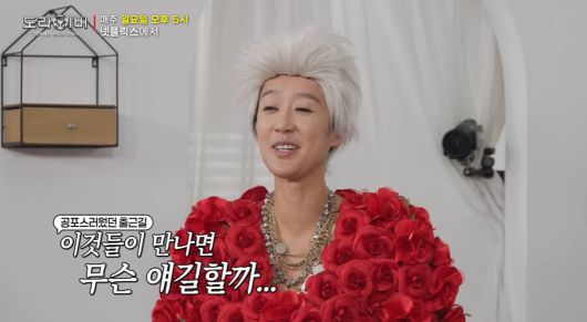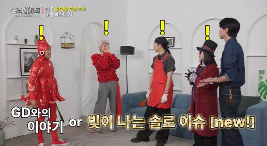 이날 홍진경은 지드래곤을 콘셉트로 한 의상을 붉은 장미 의상을 입고 나와 눈길을 끌었다. 홍진경은 "GD랑"이라고 지드래곤과의 인연을 언급하려 했고, 김숙은 "있을 게 뭐가 있어"라고 의심했다.