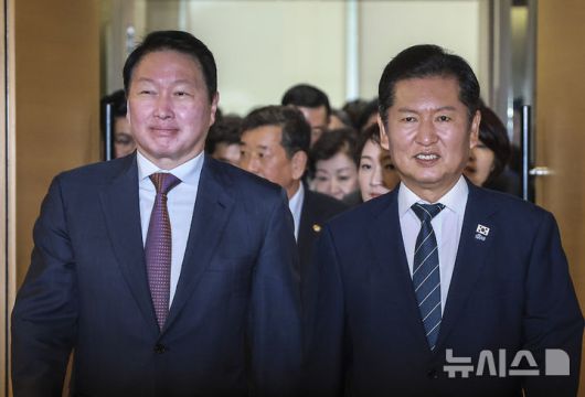 [서울=뉴시스]신재현 기자 = 정청래 더불어민주당 대표가 8일 최태원 대한상공회의소 회장을 만나 미국 조지아의 현대차-LG에너지솔루션 미 이민단속 당국의 체포·구금과 관련해 "비자 문제를 해결하기 위해 정부와 협력하겠다"고 밝혔다.