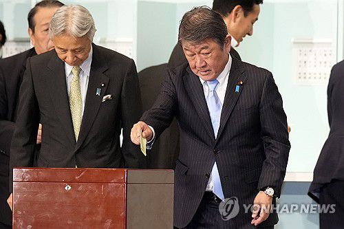 작년 9월 자민당 총재 선거에서 투표하는 모테기 전 간사장 |