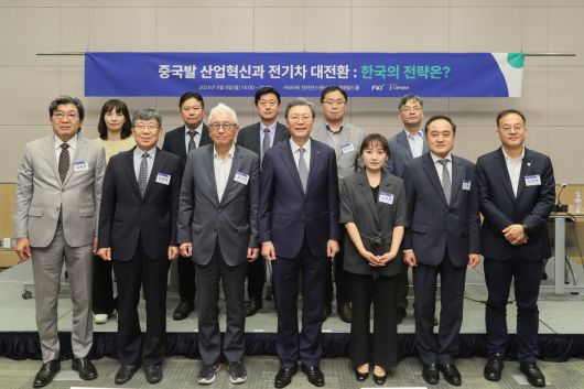 김창범 한경협 부회장을 비롯한 내빈들이 8일 FKI타워 컨퍼런스센터에서 '중국발 산업혁신과 전기차 대전환'을 주제로 열린 세미나에 참석해 기념촬영을 하고 있다. 사진 앞줄 왼쪽부터 김용준 성균관대 교수, 김영배 KAIST 명예교수, 정구현 제이캠퍼스 원장, 김창범 한경협 부회장, 노은영 성균관대 교수, 정철 한경연 원장, 김창현 중국 CEIBS(중국유럽국제공상학원) 교수. |