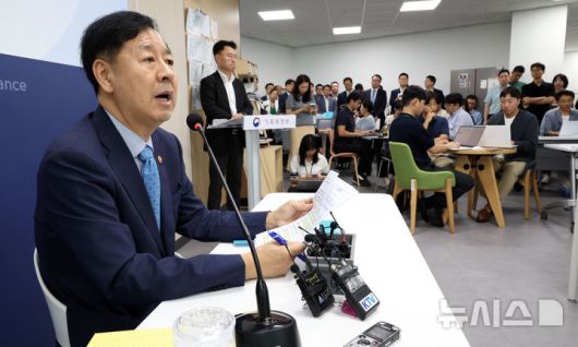 [세종=뉴시스] 강종민 기자 = 구윤철 부총리 겸 기획재정부 장관이 8일 세종시 정부세종청사에서 열린 출입기자 간담회에서 기자 질문에 답하고 있다. 2025.09.08. ppkjm@newsis.com |