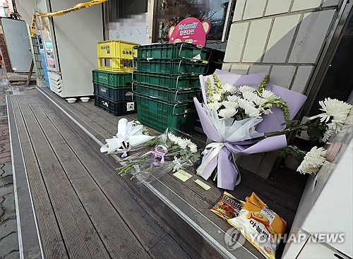 '시흥 흉기사건' 편의점 앞에 놓인 꽃다발 |