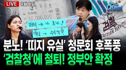 출연: 신용한 전 서원대 석좌교수, 정구승 변호사, 최혜정 한겨레 이슈부국장, 진행: 고현준. “남들 다 폐기해 XX들아”...관봉권 띠지 청문회 후폭풍 / 해군 ‘귀빈정’까지 동원...윤-김 부부 ‘선상 술파티’ 의혹 / 검찰청 78년 만에 폐지...“검찰 잘못에서 기인” / 조국혁신당, ‘성폭력 파문’에 지도부 전원 사퇴 / 조지아서 한국인 300명 체포...국힘, 이재명·특검 탓 공세. 오늘 (9월 8일) 뉴스 다이브 많은 시청바랍니다. 제작: 뉴스영상부