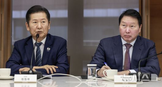 [서울=뉴시스] 류현주 정병혁 신재현 기자 = 정청래 더불어민주당 대표가 8일 최태원 대한상공회의소 회장을 만나 미국 조지아의 현대차-LG에너지솔루션 미 이민단속 당국의 체포·구금과 관련해 "비자 문제를 해결하기 위해 정부와 협력하겠다"고 밝혔다.