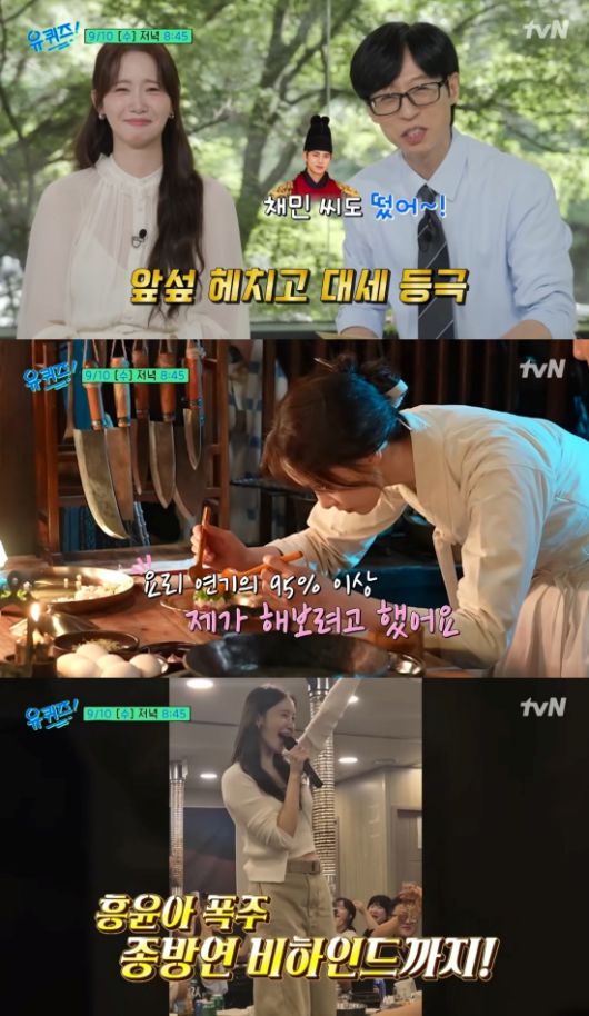 또한 유재석은 "채민 씨도 떴다. 축하드린다"며 너스레를 떨었고, 윤아에게 드라마 촬영을 위해 3개월 동안 요리 수업을 받은 것에 대해 물었다.