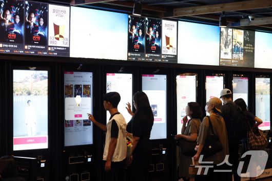 (서울=뉴스1) 박정호 기자 = 문화체육관광부(문체부)와 영화진흥위원회가 영화 관람료 6000원 할인권 잔여분 약 188만 장 재배포를 시작한 8일 서울의 한 영화관을 찾은 관람객들이 예매한 영화 티켓을 출력하고 있다. 이번 배포는 지난 2일까지 사용되지 않은 잔여 할인권을 재배포하는 것으로, 할인권은 이날 오전 10시부터 멀티플렉스 영화상영관 씨지브이(CGV), 롯데시네마, 메가박스, 씨네큐(Q) 누리집과 응용프로그램(앱)에서 사용할 수 있으며, 독립·예술영화전용관, 작은영화관, 실버영화관 등 다양한 형태의 영화관에서도 할인권을 제공할 예정이다. 2025.9.8/뉴스1