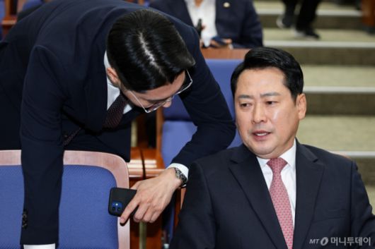 (서울=뉴스1) 유승관 기자 = 장동혁 국민의힘 대표가 8일 서울 여의도 국회에서 열린 의원총회에 참석해 박준태 비서실장과 대화하고 있다. 2025.9.8/뉴스1 Copyright (C) 뉴스1. All rights reserved. 무단 전재 및 재배포, AI학습 이용 금지. /사진=(서울=뉴스1) 유승관 기자 |