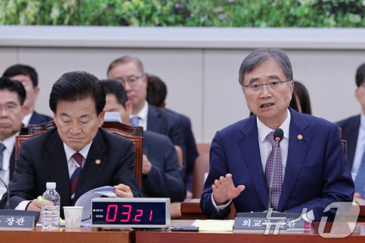 조현 외교부 장관이 8일 오후 서울 여의도 국회에서 열린 외교통일위원회 전체회의에서 의원 질의에 답변하고 있다. 2025.9.8/뉴스1 ⓒ News1 신웅수 기자 |
