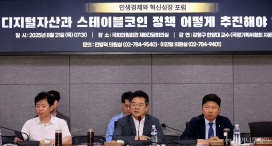 민병덕 더불어민주당 의원이 지난달 '민생경제와 혁신성장 포럼, 디지털자산과 스테이블코인 정책 어떻게 추진해야 하나?' 세미나에서 발언을 하고 있다. /사진=뉴시스 |