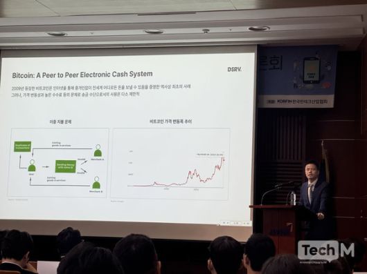 서병윤 DSRV 이사가 8일 금융투자협회 불스홀에서 열린 '스테이블코인, 금융 혁신의 미래를 열다' 토론회에서 발표하고 있다. / 사진=서미희 기자 |