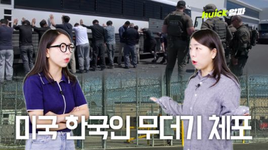 뉴스는 끊임없이 쏟아지고, 이슈는 시시각각 변합니다. '휙'은 최신 이슈를 알기 쉽게 해석하고 유쾌하게 풍자하는 한국일보 기획영상부의 데일리 숏폼 콘텐츠입니다. 하루 1분, '휙'의 시각으로 세상을 바라보세요.미국 이민 당국이 4일(현지시간) 조지아주에 있는 현대차그룹과 LG에너지솔루션 합작 배터리 회사 공장 건설 현장을 급습해 한국인 332명을 불법체류 혐의로 체포했다. 체포된 인원은 한국인 포함 총 475명으로 미국 이민자 단속 역사상 가장 큰 규모다. 미 이민세관단속국(ICE)은 이들이 적법하지 않게 입국했다고 지적했다. 정식 취업 비자 발급이 까다롭다 보니, 관행상 단기 상용 비자(B1, B2)나 전자여행허가(ESTA)를 발급받고 입국해 일해 왔는데 이를 문제 삼은 것이다. 도널드 트럼프 행정부가 반이민 정서가 강한 지지층을 결집시키고 한국 기업이 더 많은 미국인을 고용하도록 하기 위해 이번 단속을 벌였다는 분석이 나온다. 다행히 7일 구금된 이들을 석방하는 데 합의가 이뤄졌지만, 미국 내 한국 근로자들의 불안정한 체류 자격은 해결해야 할 과제로 남았다.