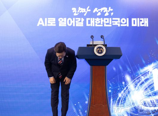 (서울=뉴스1) 이재명 기자 = 이재명 대통령이 8일 서울 중구 서울스퀘어에서 열린 ‘대한민국, AI로 날다’ 국가인공지능(AI) 전략위원회 출범식에서 인사를 하고 있다. (대통령실 제공. 재판매 및 DB 금지) 2025.9.8/뉴스12expulsion@news1.krCopyright ⓒ 뉴스1. All rights reserved. 무단 전재 및 재배포, AI학습 이용 금지.