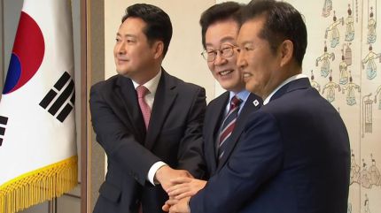 그러면 대통령과 여야 대표 오늘 만나서 어떤 얘기를 나눴는지 듣고 다시 오겠습니다. 앞서서 정청래 민주당 대표가 악수는 사람과 하는 거라고 해서 장동혁 대표가 뼈 있는 말을 했습니다. 마늘과 쑥을 먹었다. 물론 농담이겠지만요. 어쨌든 그런 표현을 했었기 때문에 두 대표가 악수를 할까, 한다면 어떤 표정으로 할까가 관건이었는데 어쨌든 겉모습으로는 굉장히 화기애애했습니다.