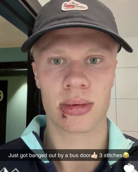 홀란드는 8일 자신의 SNS에 부상 당한 얼굴 사진을 공유하며 "버스 문에 부딪혀 세 바늘을 꿰맸다"라고 이야기했다. 이어 팬들과의 소통 과정에서 "누구한테 맞았냐"라고 묻자 웃으며 "틀렸다"고 답했고, "마르틴 외데고르가 때린 거냐"라는 질문에는 홀란드는 "맞다"고 농담하며 분위기를 풀었다. 큰 부상은 아닌 듯한 모습에 팬들은 안도의 한숨을 쉬었다.