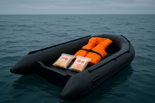 신고를 받은 해경은 즉시 현장으로 출동해 확인 작업을 벌였다. 보트 안에서 사람은 발견되지 않았다. 대신 낚싯대 2대와 구명조끼 6벌, 중국산으로 표기된 빵과 비상식량이 나왔다.