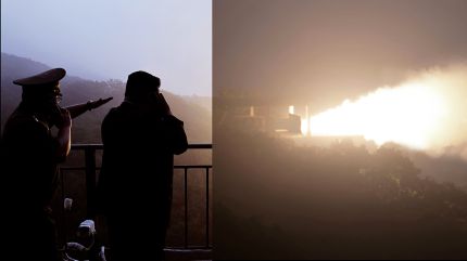 김정은 북한 국무위원장이 어제(8일) 탄소 섬유 복합 재료를 이용한 대출력 고체 엔진의 지상 분출 시험을 참관했다고 북한 노동신문이 보도했습니다.
