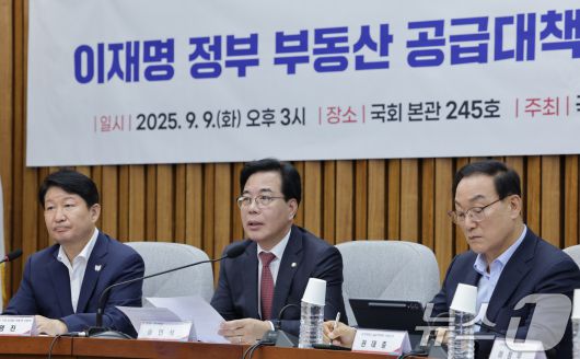 (서울=뉴스1) 신웅수 기자 = 송언석 국민의힘 원내대표가 9일 오후 서울 여의도 국회에서 열린 이재명 정부 부동산 공급 대책 평가와 전망 긴급토론회에서 인사말을 하고 있다. 2025.9.9/뉴스1phonalist@news1.krCopyright ⓒ 뉴스1. All rights reserved. 무단 전재 및 재배포, AI학습 이용 금지.