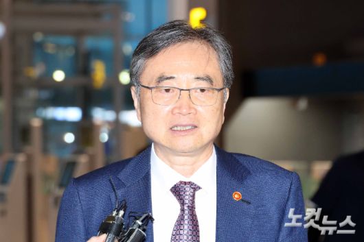 조현 외교부 장관이 8일 인천국제공항 제2여객터미널을 통해 미국으로 출국하고 있다. 영종도=박종민 기자 |