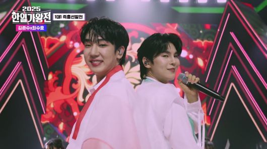 김준수와 최수호는 영탁의 ‘한량가’로 멋과 흥이 있는 국악풍 정통 트롯을 시원한 보컬로 풀어내며 K-기세를 터트렸다. 너무 다른 장르의 격돌에 심사위원들은 또다시 “환장하겠네”를 내뱉으며 극강의 심사 난이도를 드러냈지만, 김준수와 최수호가 J-감성을 터트린 일본 트리오 팀을 이기며 2대 1로 전세를 뒤집었다.
