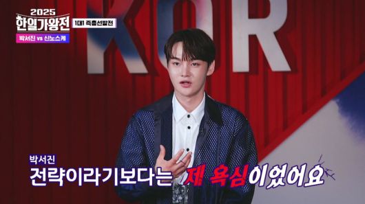 방송 말미에는 한국의 ‘가왕’ 박서진이 예선전에서 천재적인 드럼 실력으로 ‘장구의 신’ 박서진을 긴장하게 했던 사이조 히데키의 아들 신노스케를 향한 선전포고 대결에 나서는 모습이 담겼다. 예선전 당시 드럼을 치는 신노스케의 무대에 “내가 하려던 걸 다 한다. 저 하지 말까요”라며 당혹감을 드러냈던 박서진은 본선 1차전 시작부터 신노스케와 붙겠다는 강력한 의지를 표명했던 상황.