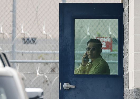 조기중 미국 워싱턴 총영사가 2025년 9월9일(현지시간) 미국 당국의 이민단속으로 체포된 현대차-LG엔솔 배터리공장 건설 현장 직원들이 수감돼 있는 조지아주 포크스턴의 이민세관단속국(ICE) 구금시설 인근에서 통화를 하고 있다. 연합뉴스 |