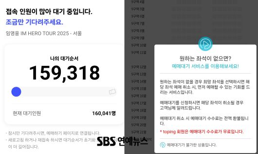 지난 9일 오후 8시 NOL 티켓을 통해 열린 임영웅의 2025 전국투어 콘서트 'IM HERO' 서울 공연 예매는 시작과 동시에 서버 과부하가 발생했다. 대기 인원이 무료 16만 명까지 치솟았고 이로 인해 대기 시간은 2시간씩 이어졌다.