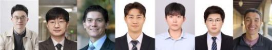 연구진, (좌측부터) 장지욱 UNIST 교수, 서동화 KAIST 교수, 토머스 하라미요 스탠포드대 교수, 오동락 연구원, 황선우 연구원, 김동연 연구원, 제시 매튜 연구원. UNIST 제공 |