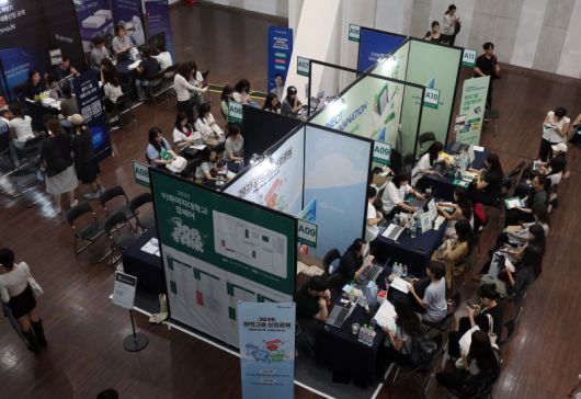지난 4일 오후 서울 서대문구 이화여자대학교에서 열린 2025 이화 잡페어에서 학생들이 채용 상담을 받고 있다. 뉴시스 |