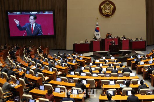 [이데일리 노진환 기자] 송언석 국민의힘 원내대표가 10일 오전 서울 여의도 국회에서 열린 제429회국회(정기회) 제3차 본회의에서 교섭단체 대표연설을 하고 있다.