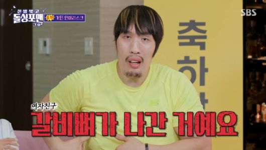 이어 이상민은 "리스크 두번째. 함께 하려면 목숨을 걸어야한다. 잠꼬대로 여자친구 갈비뼈를 나가게 한적 있다더라"라고 말해 모두를 놀라게 했다. 최홍만은 "잠결에 제가 손가락 두개로 딱 쳤는데 갈비뼈가 나간거다. 세게 한것도 아니고 자연스럽게 툭 놨는데 실금이 갔다더라"라고 말했다. 이를 들은 현영은 "그분이 골다공증이 있는거 아니냐"고 말해 폭소케 했다.